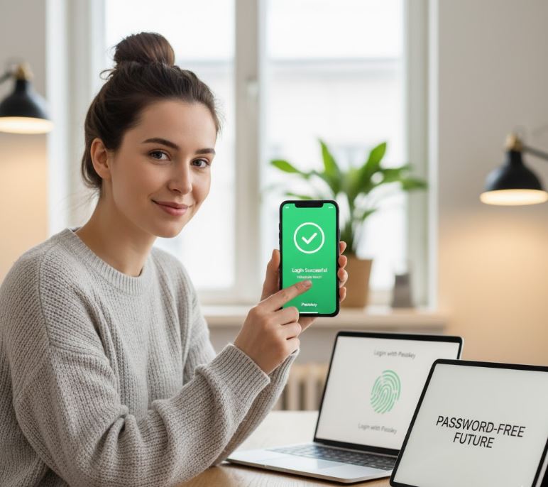 A passkey lets you sign in without typing a password at all. Instead of remembering a long mix of letters and numbers, you can log in using your fingerprint, your face scan, or a simple unlock method on your phone or computer. Your device becomes the “key,” which means you never have to think about remembering anything.